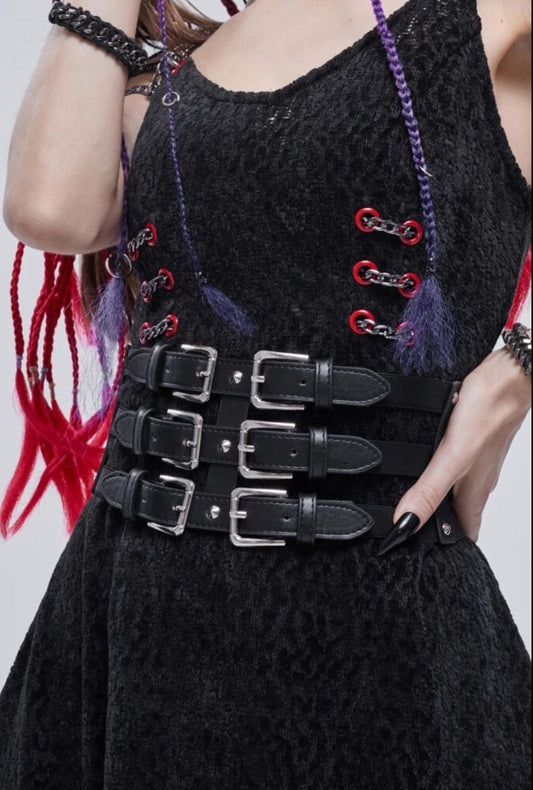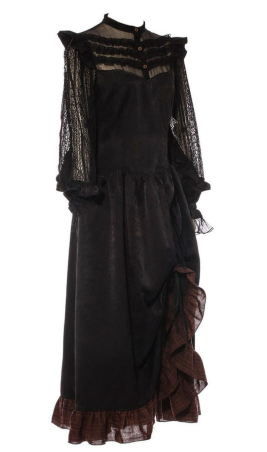 Black Lace Steampunk Dress with Ruffle Hem and Bishop Sleeves