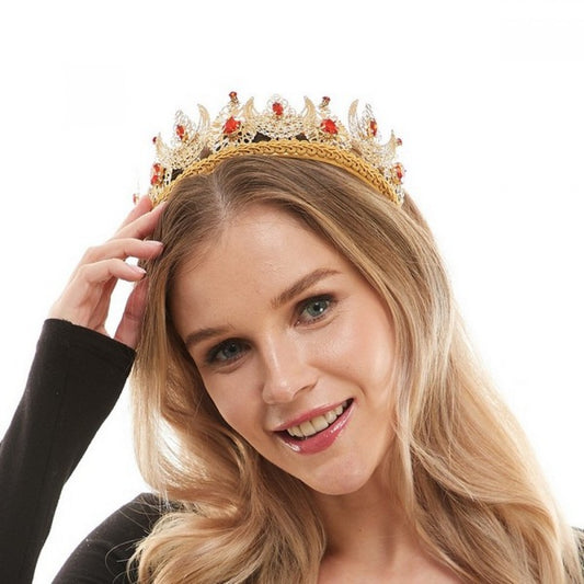Gold Crown Headband with Red Gems