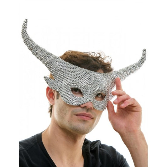 Silver Rhinestone Horn Mask
