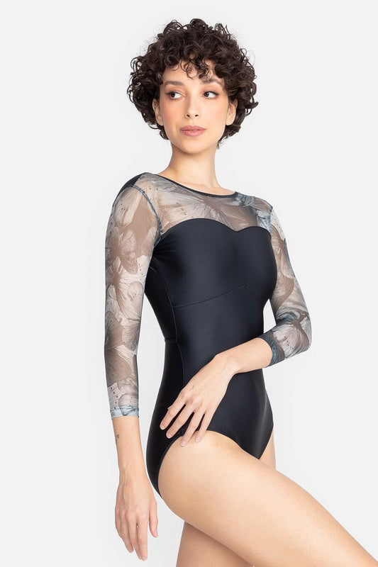 3/4 Sleeve Printed Mesh Leotard