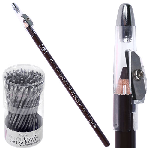 2-IN-1 EYE/LIP LINER PENCIL 6DZ/JAR W/SHARPENER D BROWN
