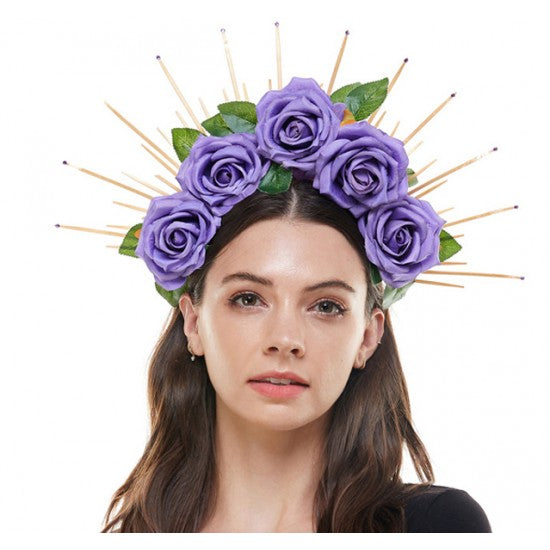 Radiate bold beauty with this Rose Halo Crown featuring lush faux roses and golden spiked accents. Perfect for Valentine's Day, Día de los Muertos, Halloween, or romantic-themed parties. A striking accessory to make any look unforgettable One Size Fits Most.