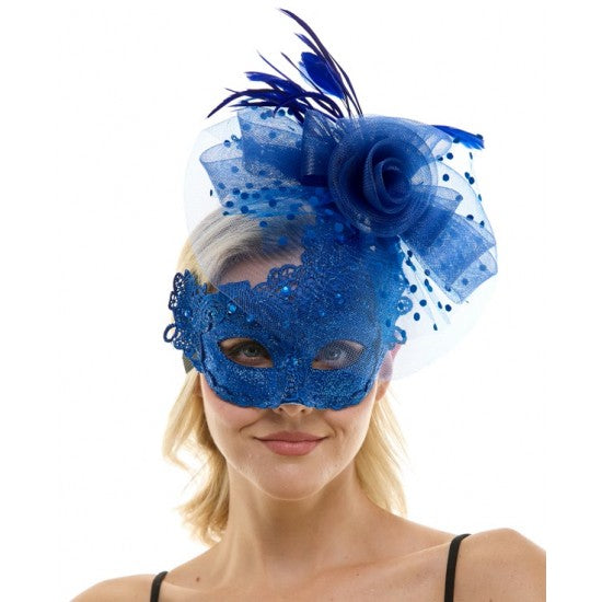 Add mysterious elegance to your look with this lace masquerade mask featuring a dramatic fascinator with mesh polka dots, a rose accent, and feathers. Ideal for Halloween, masquerade balls, and black-tie costume events. A chic and timeless party accessory.