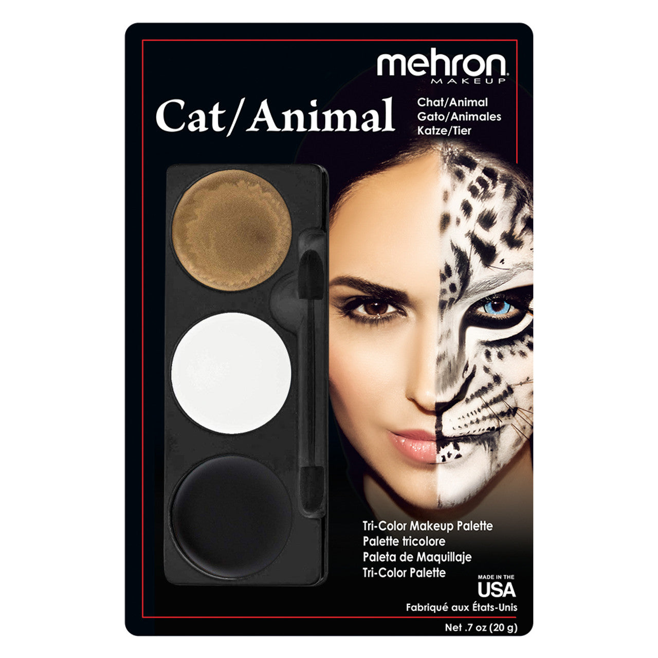 Each of our Tri-Color Palettes contains three colors of our professional cream makeup to create the character pictured on the blister card. Each card comes with detailed instructions on how to apply the makeup and also lists items that will complement the character you are creating. As with any professional cream makeup, Mehron’s Tri-Color Palette makeup should be “set” with Colorset Powder. Available in a variety of characters. Remove with Makeup Remover followed by soap and water. .7 oz (20 g) palette with dual applicator foam brush